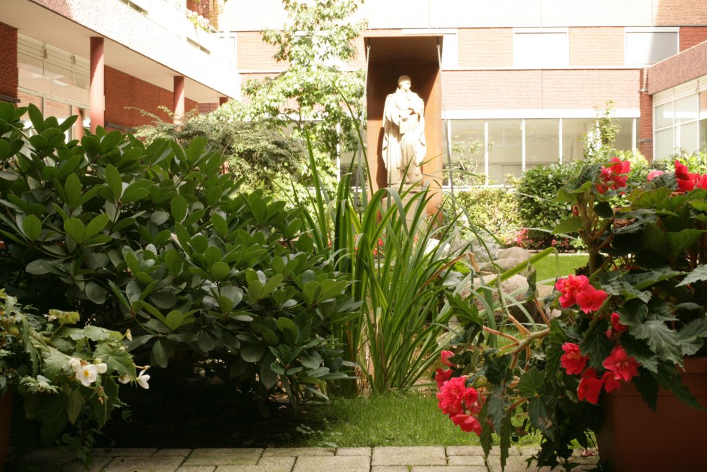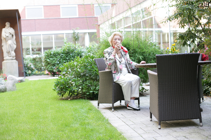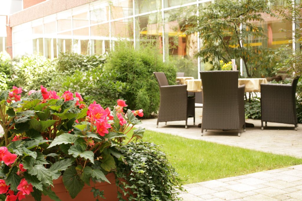 Auf einer kleinen Terrasse im hinteren Innenhof der kleinen „Piazza Albertus“ mit Grünflächen und Teich lädt Sie das Dom Café an sonnigen Tagen zum Verweilen ein. In dieser kleinen Stadtoase kann man dem hektischen Stadtalltag entfliehen und Körper und Seele an einem warmen Sommertag zu entspannen.