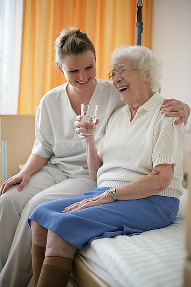 Der vollstationäre Pflegebereich umfasst 54 Einzelzimmer auf 3 Etagen. Die Einzelzimmer sind alle ausgestattet mit Bad und WC, jedes 2. Zimmer hat einen Balkonzugang. Die Zimmer haben eine Grüße zwischen 22,50 und 29,31 m² und sind komplett eingerichtet. Auf Wunsch können sie mit kleineren eigenen Möbelstücken ergänzt werden.
